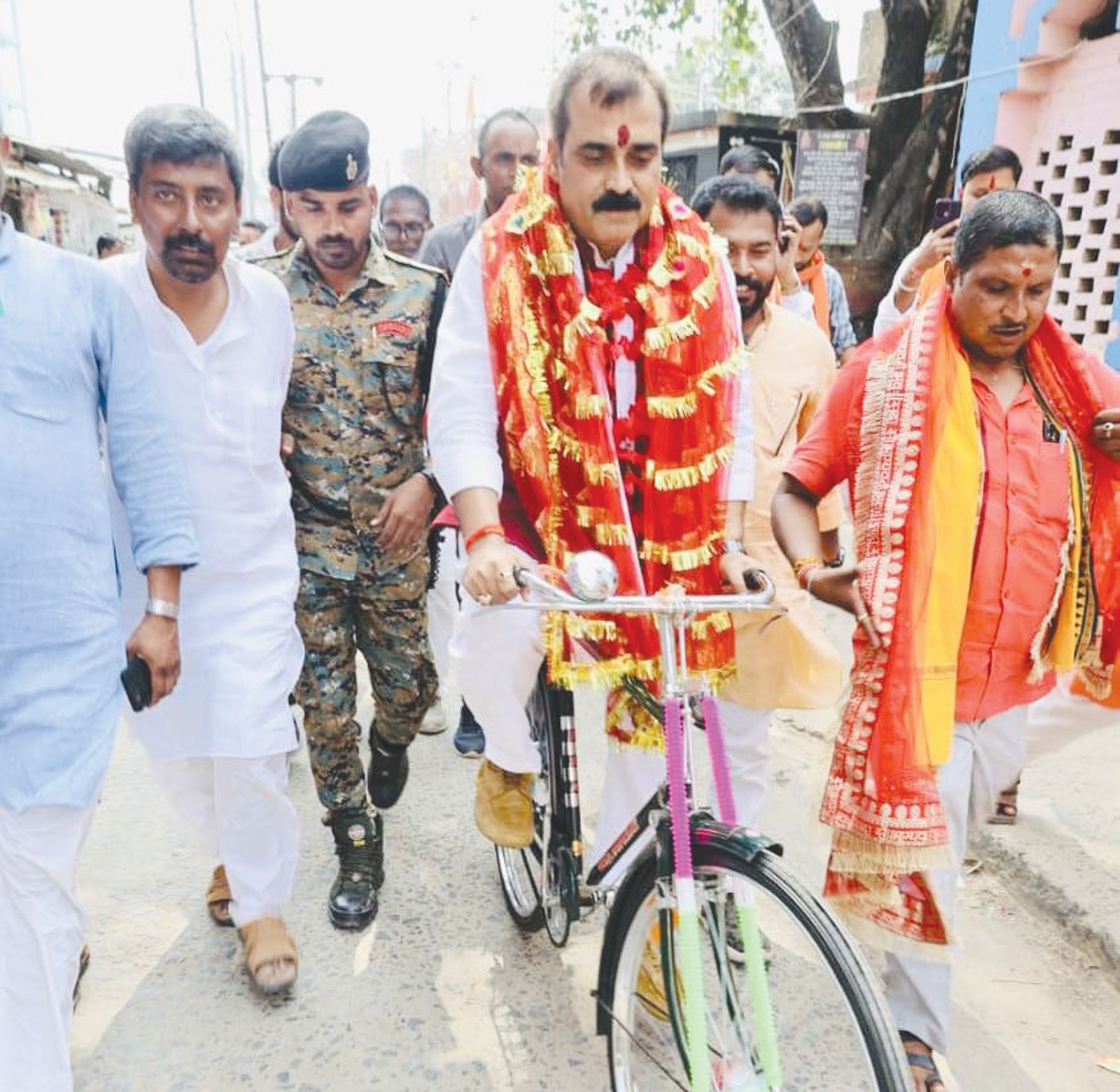 मंत्री जीवेश मिश्रा ने सुबह पत्नी के साथ पूजा की। इसके बाद जाले से दरभंगा शहर पहुंचे। यहां से साइकिल पर सवार होकर नामांकन स्थल जिला निर्वाचन कार्यालय (डीडीसी ऑफिस) तक पहुंचे। उनके साथ दर्जनों कार्यकर्ता साइकिल पर सवार होकर चल रहे थे। इस दौरान समर्थक फिर एक बार जीवेश मिश्रा सरकार के नारे भी लगा रहे थे।