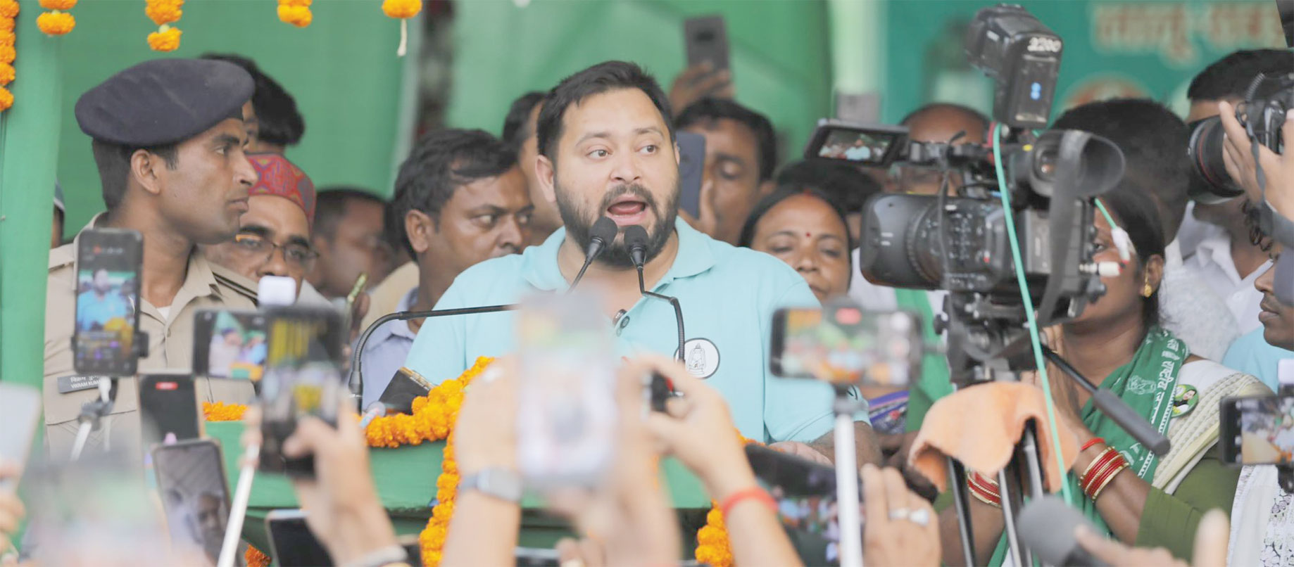 पटना । पटना के पोलो रोड में दूसरे चरण के मतदान से पहले नेता प्रतिपक्ष तेजस्वी यादव सोमवार को प्रेस कॉन्फ्रेंस की। उनके साथ सांसद मीसा भारती भी मौजूद रहीं। तेजस्वी यादव ने चुनाव आयोग से पूछा कि चुनाव में भाजपा शासित प्रदेशों से ही सुरक्षा बल क्यों बुलाई गई। 208 कंपनियां भाजपा शासित राज्य की लगाई गई हैं। 68% पुलिस ऑबजर्वर बीजेपी शासित राज्यों से हैं। तेजस्वी ने सवाल पूछा कि बंगाल तमिलनाडु झारखंड की पुलिस क्यों नहीं मंगवाई गई।