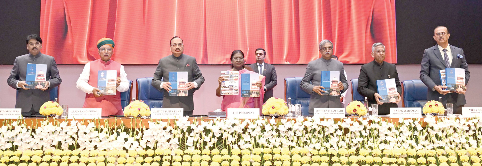 नई दिल्ली । राष्ट्रपति द्रौपदी मुर्मू (Droupadi Murmu) ने बुधवार को सुप्रीम कोर्ट में संविधान दिवस पर आयोजित समारोह को संबोधित किया। राष्ट्रपति ने कहा, आज के दिन मैं उन संविधान निर्माताओं को सादर नमन करती हूं जिन्होंने विश्व इतिहास के सबसे विशाल लोकतन्त्र के सबसे बड़े लिखित संविधान को स्वरूप दिया। कार्यपालिका, विधायिका एवं न्यायपालिका ने संविधान के आदर्शों का पालन और मर्यादाओं का निर्वहन किया है। इसके लिए मैं इन तीनों स्तंभों से जुड़े लोगों की सराहना करती हूं।