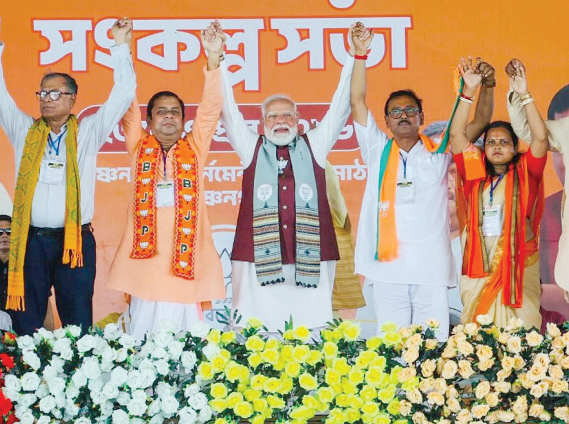 पीएम मोदी ने कहा कि यह चुनाव हम नहीं लड़ रहे हैं, इस बार बंगाल में चुनाव खुद यहां की जनता लड़ रही है। उन्होंने कहा, यह उत्साह, यह उमंग, यह जोश भरोसे का है। भय जा रहा है, भरोसा आगे बढ़ रहा है। उन्होंने कहा कि गांव-गांव, गली-गली, स्त्री-पुरुष, युवा-बुजुर्ग सब एक साथ बोल रहे हैं और बदलाव चाहते हैं।