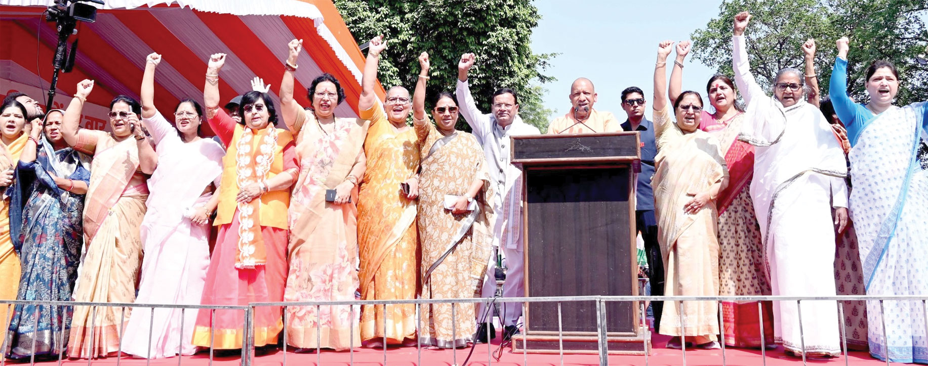 विधान भवन के सामने महिलाओं को संबोधित करते हुए मुख्यमंत्री योगी आदित्यनाथ ने कहा कि नारी शक्ति वंदन अधिनियम महिलाओं को विधानसभाओं एवं लोकसभा में 33 प्रतिशत आरक्षण प्रदान करने की दिशा में एक ऐतिहासिक पहल है, किंतु कांग्रेस, समाजवादी पार्टी, तृणमूल कांग्रेस, डीएमके सहित इंडी गठबंधन के दलों द्वारा इसे बाधित करने का प्रयास उनके अलोकतांत्रिक और महिला-विरोधी चेहरे को उजागर करता है। प्रधानमंत्री नरेन्द्र मोदी द्वारा इन दलों को अपनी नकारात्मक छवि सुधारने का अवसर दिया गया था, किंतु इन्होंने उसका दुरुपयोग करते हुए महिलाओं के अधिकारों के साथ अन्याय किया।