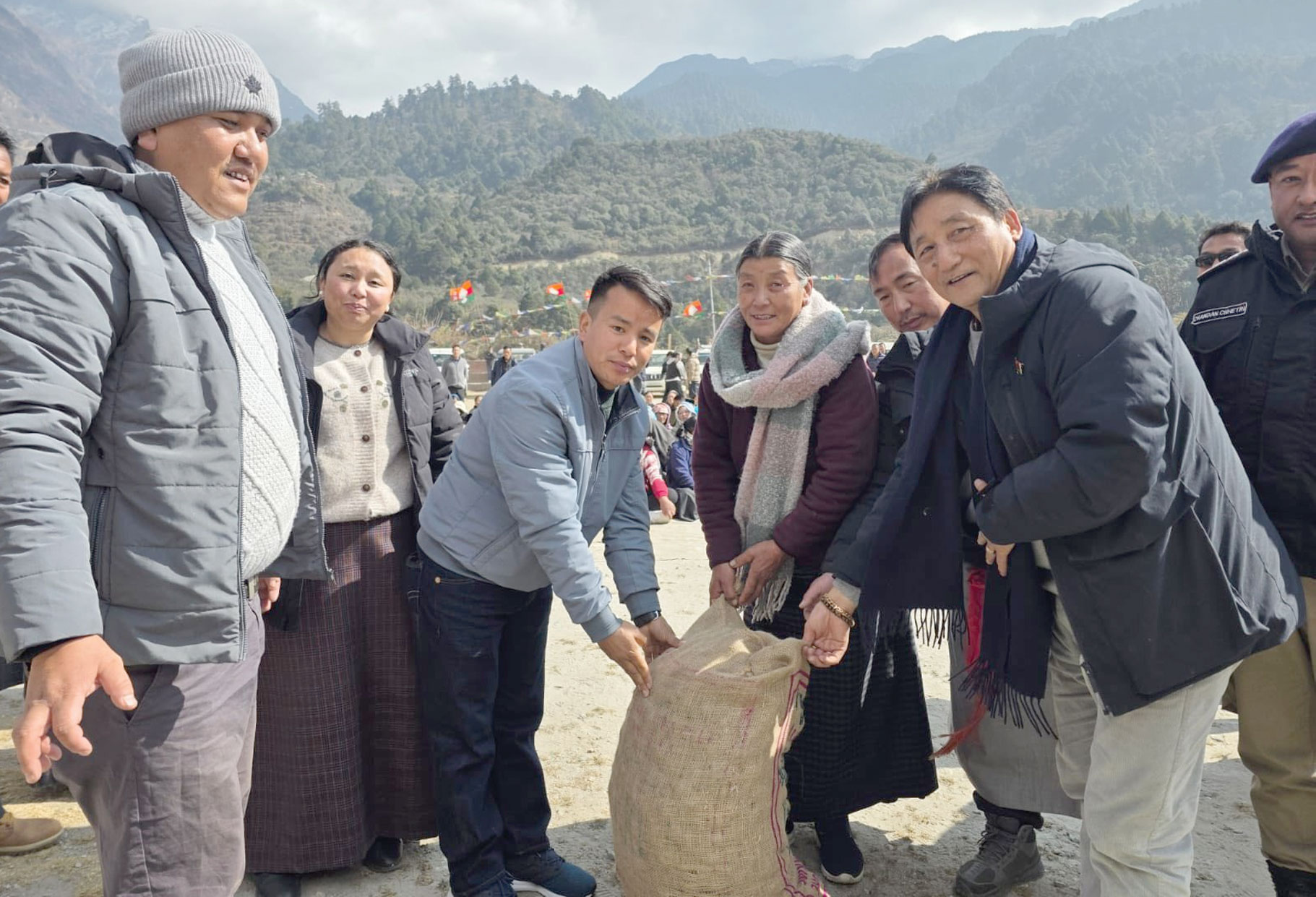 मंगन : वाइब्रेंट विलेज प्रोग्राम के तहत आलू के बीज एवं पशु चारे और प्रधानमंत्री कृषि सिंचाई योजना के तहत माइक्रो इरिगेशन सेट के वितरण हेतु आज चुंगथांग में कार्यक्रम आयोजित किया गया, जिसमें लाचुंग, चुंगथांग, शिपगेयर, पेगोंग और थेंग जैसी जगहों के लाभार्थी शामिल हुए।