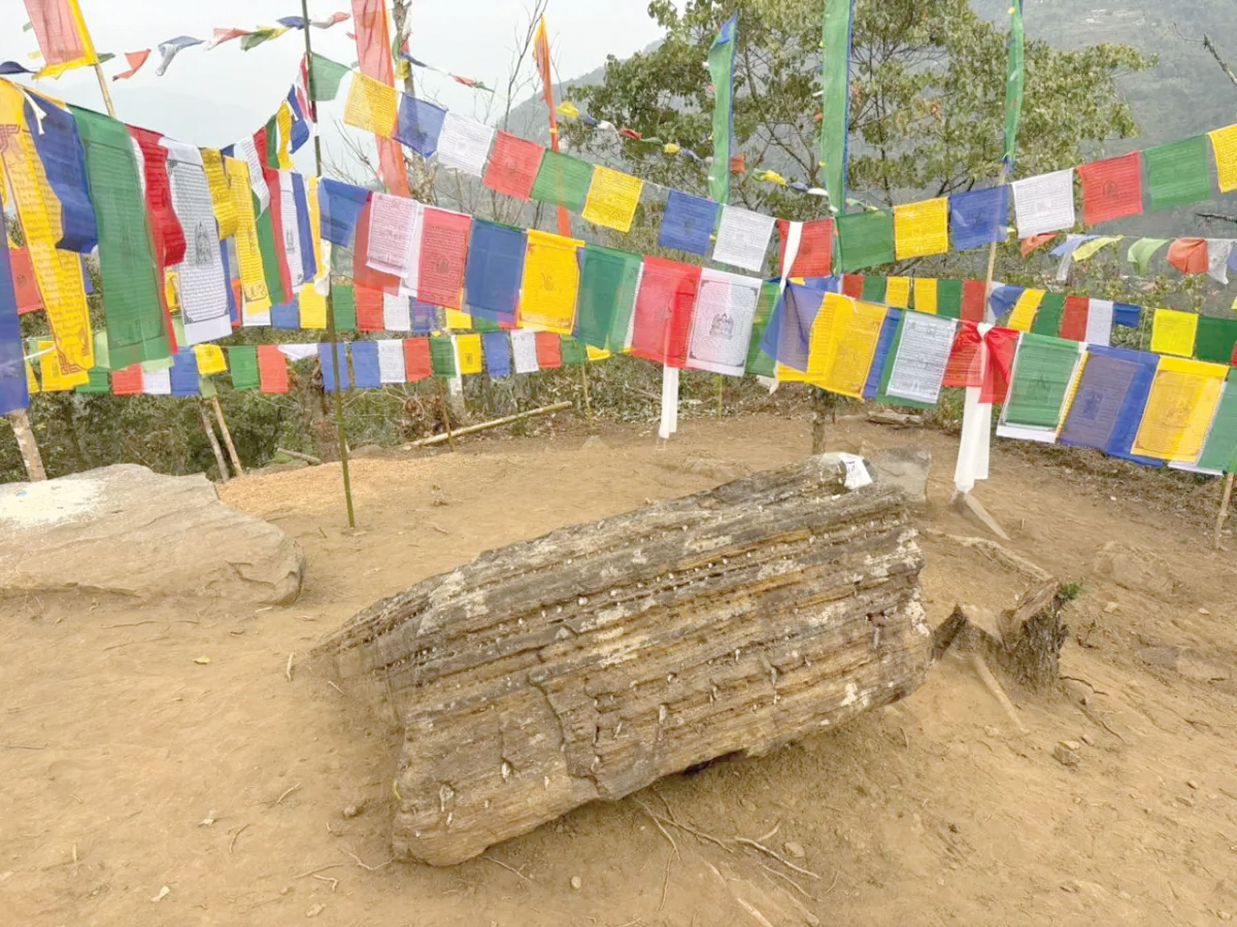 बहरहाल, शर्मा के आकलन के बाद ही गांव वालों को उस जगह के संभावित पुरातात्विक महत्व के बारे में पता चला। गुरुंग ने यह भी बताया कि जंगल साफ होने के बाद, 2005 के आसपास प्राचीन पाली, जोंग्खा भाषाओं में लिखे शिलालेखों वाले पत्थर के निशान और कुछ पर ‘ओम मणि पद्मे हुम’ का तिब्बती शिलालेख और गुरु पद्मसंभव से जुड़ी नक्काशी देखी गई। ये छोटे नक्काशीदार पत्थर अब दिखाई नहीं देते हैं और माना जाता है कि वे पास की एक चट्टान से नीचे गिर गए हैं।