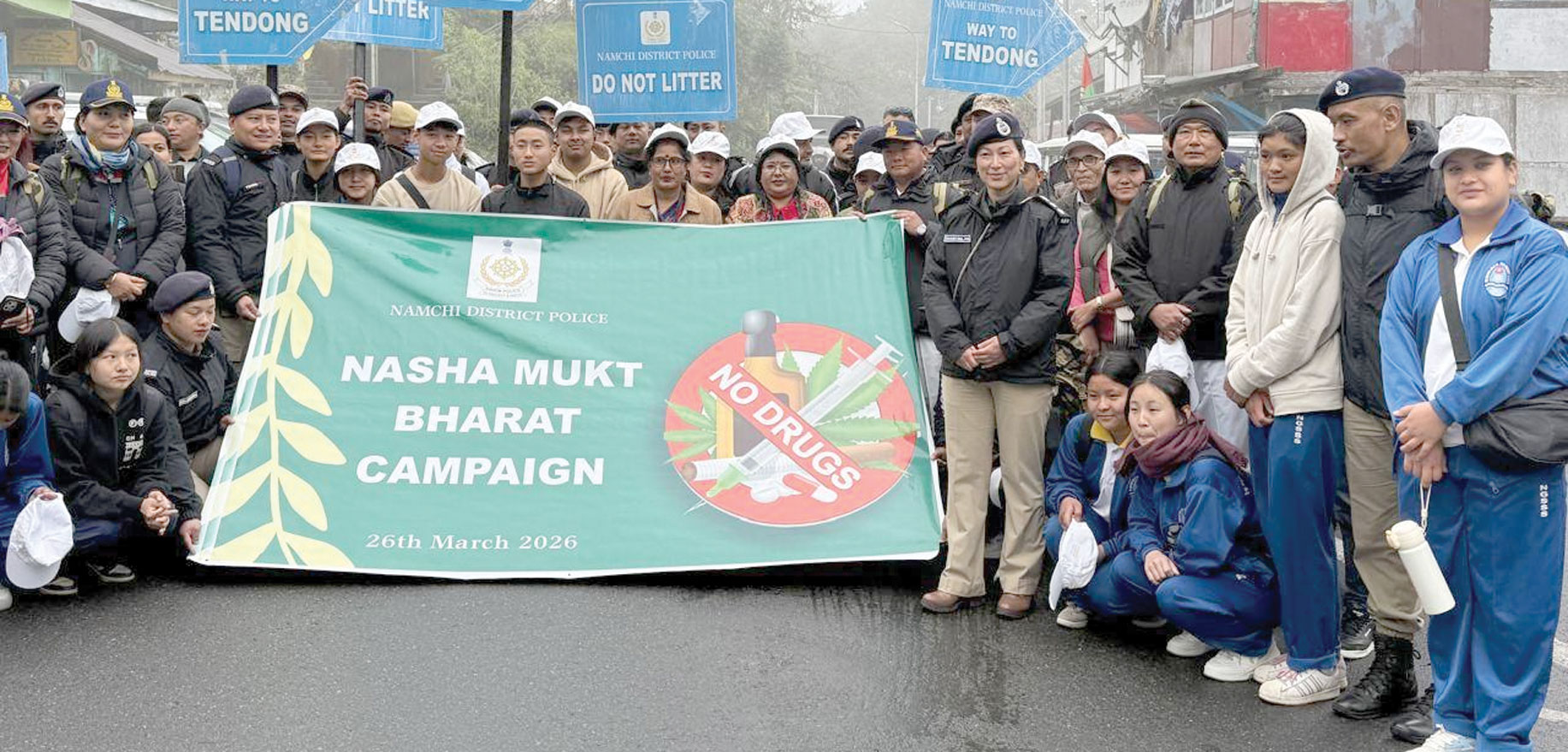 नामची : नामची जिला पुलिस ने आज नामची जिले के तेंदोंग हिल में “नशा मुक्त भारत अभियान” के तहत एक जागरुकता अभियान आयोजित किया। यह अभियान जिला प्रशासनिक केंद्र (डीएसी) और अल्केम लेबोरेटरीज लिमिटेड के सहयोग से आयोजित किया गया, जिसका उद्देश्य शराब और नशीले पदार्थों के दुरुपयोग की रोकथाम के प्रति जागरुकता फैलाना तथा आम लोगों के बीच स्वस्थ और जिम्मेदार जीवनशैली को बढ़ावा देना था।