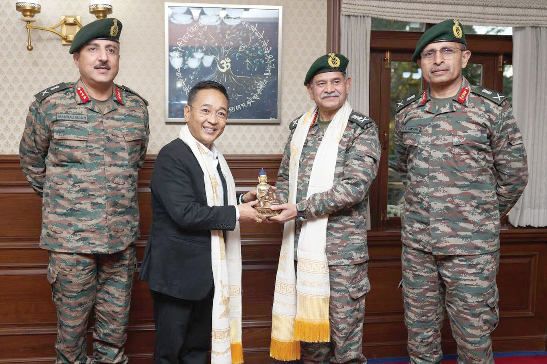 गंगटोक : थल सेनाध्यक्ष जनरल उपेंद्र द्विवेदी ने सिक्किम के अग्रिम क्षेत्रों के अपने दौरे के दौरान राज्य में सुरक्षा तैयारियों की व्यापक समीक्षा करने के साथ मुख्यमंत्री प्रेम सिंह तमांग (Prem Singh Tamang) से भी मुलाकात की। इस दौरान, सेना प्रमुख के साथ पूर्वी कमान, त्रिशक्ति कोर और ब्लैक कैट डिवीजन के जीओसी सहित वरिष्ठ सैन्य कमांडरों ने मुख्यमंत्री के साथ राष्ट्रीय सुरक्षा प्राथमिकताओं और चल रही नागरिक-सैन्य पहलों पर चर्चा की।