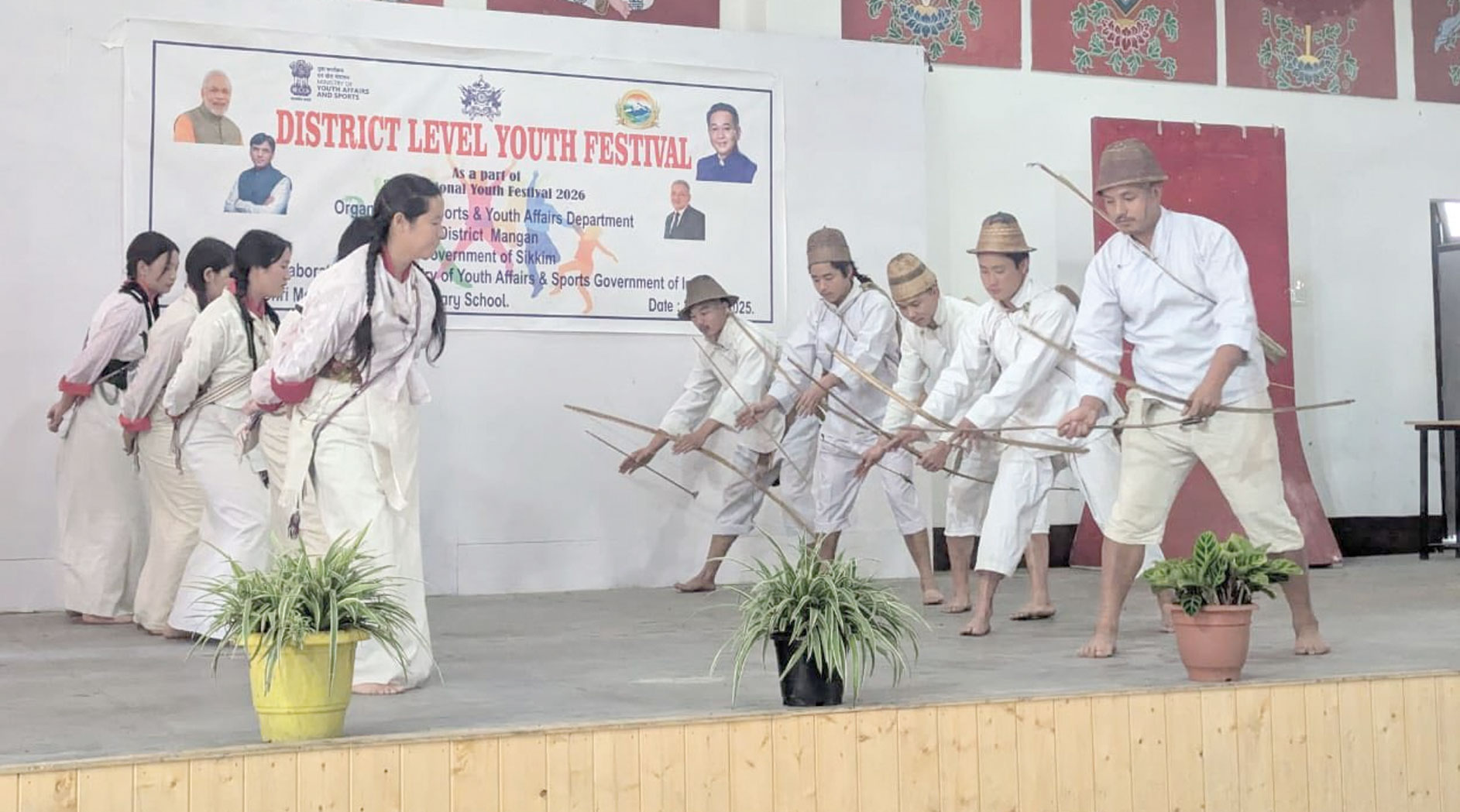मंगन : जिला खेल एवं युवा मामलों के विभाग द्वारा अपने केंद्रीय विभाग के साथ मिलकर आज मंगन पीएमश्री सीनियर सेकेंडरी स्कूल में एक जिला स्तरीय यूथ फेस्टिवल आयोजित किया गया। इसका उद्देश्य युवाओं की नेतृत्व क्षमता और नागरिक जागरुकता को बढ़ावा देते हुए विचार, रचनात्मकता और सांस्कृतिक पहचान बताने के लिए एक मंच देना था। कार्यक्रम में रिंगिम नम्पटम जीपीयू अध्यक्ष शेराप भूटिया मुख्य अतिथि के तौर पर शामिल हुए।