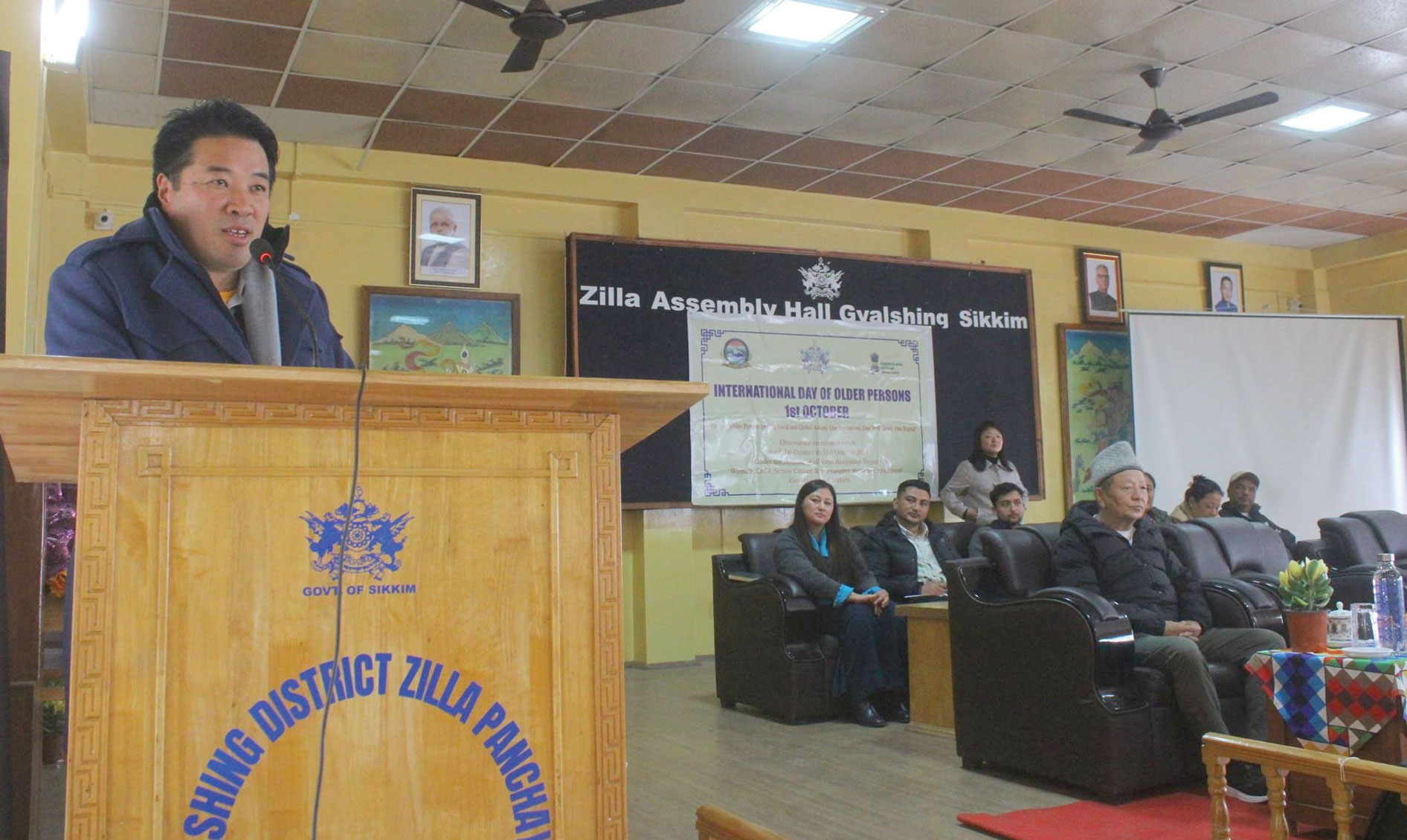 गेजिंग : अंतरराष्ट्रीय वृद्धजन दिवस के उपलक्ष्य पर आज जिले के महिला, बाल, वरिष्ठ एवं दिव्यांगजन कल्याण विभाग द्वारा अटल वयो अभ्युदय योजना के तहत जिला भवन में एक कार्यक्रम आयोजित किया गया, जिसमें जिला कलेक्टर Tenzing D Denzongpa मुख्य अतिथि के रूप में शामिल हुए। कार्यक्रम में तिकजुक-क्योंग्‍सा जीपीयू पंचायत अध्यक्ष जंगमू भूटिया, उपाध्यक्ष रिनचेन नामग्याल भूटिया, वन स्टॉप सेंटर की केंद्र प्रशासक पेमा डिकी भूटिया, काउंसलर, अन्य अधिकारी एवं वरिष्ठ नागरिक शामिल हुए।
