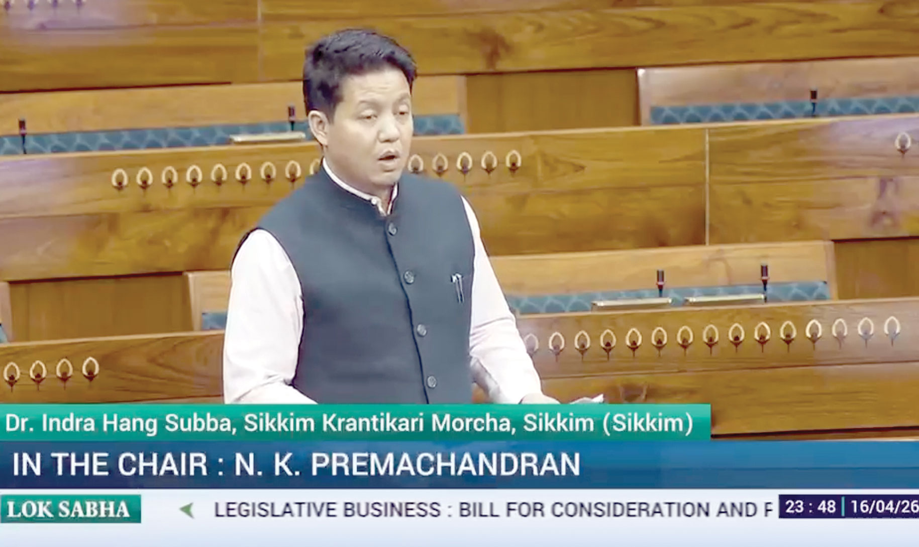 गंगटोक : सिक्किम के एकमात्र लोकसभा सांसद इंद्र हांग सुब्बा (Indra Hang Subba) ने शुक्रवार को संसद में तीन अहम कानूनों-संविधान (131वां संशोधन) विधेयक, 2026; परिसीमन विधेयक, 2026 और केंद्र शासित प्रदेश कानून (संशोधन) विधेयक, 2026-के लिए अपना समर्थन जताया। साथ ही, उन्होंने राज्य में लिंबू-तमांग अनुसूचित जनजातियों के लिए सीट आरक्षण की लंबे समय से चली आ रही मांग को भी उठाया।
