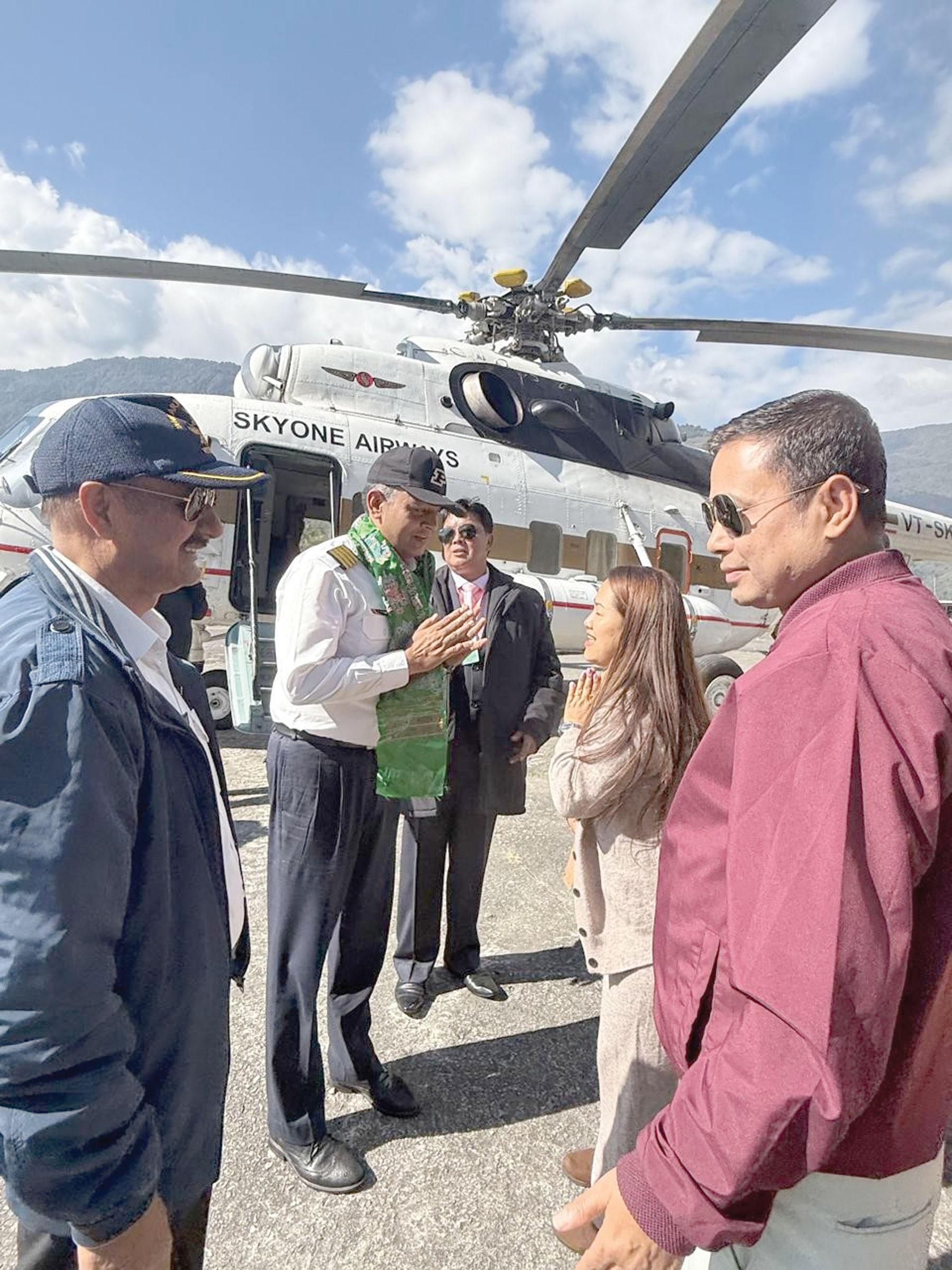 सोरेंग : जिले के दोदक हेलीपैड पर आज स्काईवन एयरवेज के एमआई-172 हेलीकॉप्टर की सफल ट्रायल लैंडिंग की गयी। राज्य पर्यटन विकास निगम द्वारा सोरेंग डीएसी और हेलीपैड कमेटी के साथ मिलकर की गयी इस हेलीकॉप्टर लैंडिंग की फ्लाइट क्रू में कैप्टन त्रिकालदर्शी कुमार सिंह, कैप्टन एमसी मिश्रा के साथ-साथ सुरेंद्र सिंह, डीके शर्मा, रवींद्र और एसटीडीसी के असिस्टेंट जनरल मैनेजर (हेलीकॉप्टर डिवीजन) तेज पाल प्रधान शामिल थे। लैंडिंग के बाद, क्रू सदस्यों का गर्मजोशी से स्वागत किया गया।