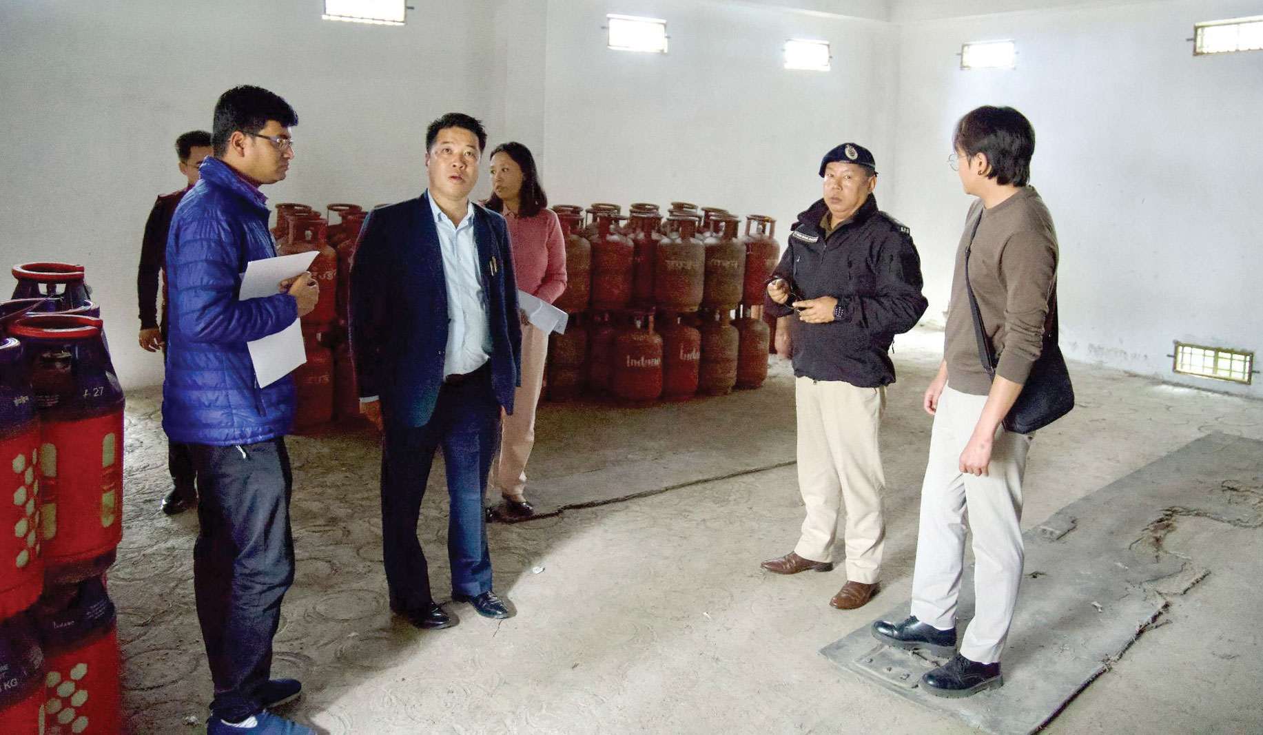 गेजिंग : गेजिंग के जिलाधिकारी तेनजिंग डी डेंजोग्पा (Tenzing D Denzongpa) ने आज पुलिस अधीक्षक छिरिंग शेरपा के साथ मिलकर तिकजेक स्थित कुन्फेन इंडेन गैस गोदाम (इंडियन ऑयल कॉर्पोरेशन) का निरीक्षण किया। निरीक्षण के दौरान जिलाधिकारी ने गोदाम में उपलब्ध एलपीजी सिलेंडरों की स्थिति की जांच की और पॉइंट-वाईज वितरण से संबंधित रिकॉर्ड का अवलोकन किया।